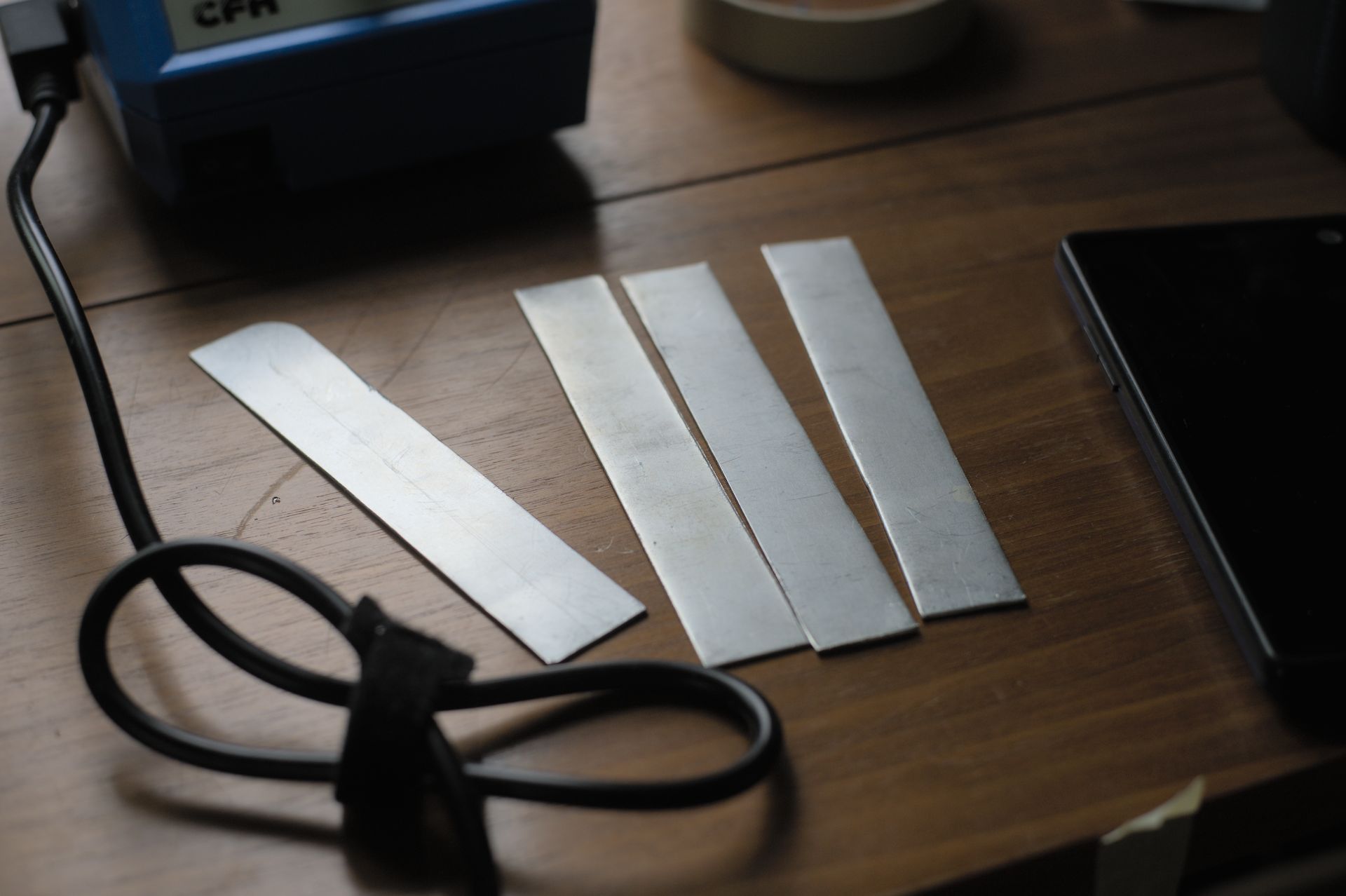 The first few modules I soldered were 4x oscillators, designed by David Haillant. Front Panels are easily made from thrifted alu panels, and an alu scissors. Pretty fun project actually, satisfying to have made my own panels.