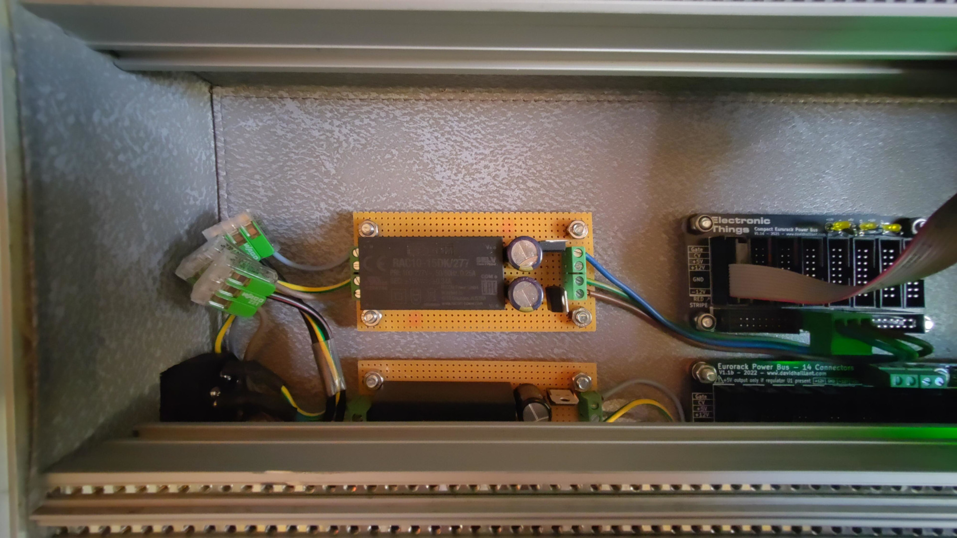 Then I needed two bus boards, which are also easily available as DIY kits. Some terminal blocks for safe connections to the power supply.